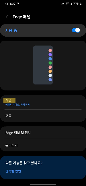 +) 23년 12월 12일부로 엣지 패널에서 카카오톡 기능이 서비스 종료되었습니다. 우연이겠지만 몇달만에 기능이 삭제되어버렸네요.